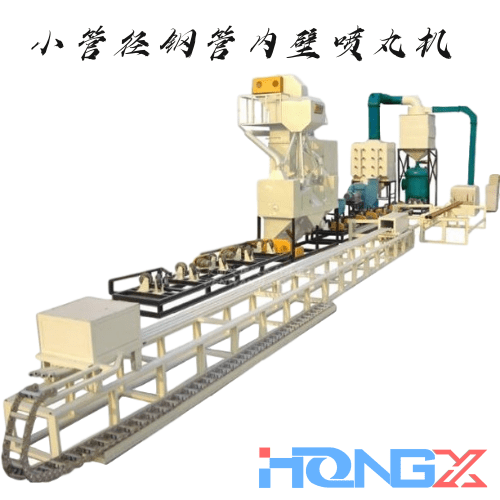 钢管内外壁抛丸机适用于钢管及钢管类产品的内外抛(喷)丸处理,清除其氧化层及焊渣等,呈现出金属光泽,以利于工件喷漆机涂敷。在石油管道、大型输送管道、煤矿通风等行业应用广